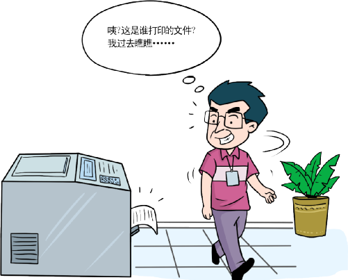 ★打印、复印、传真时,请在打印机、传真机旁耐心等待,工作进度结束后,请将全部的文件随手带走,以免信息被泄露。