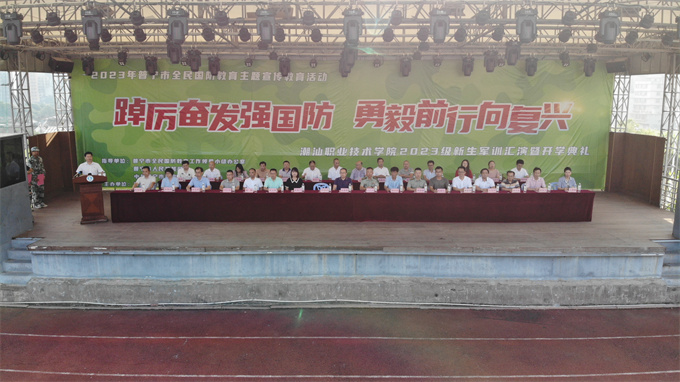9月23日上午,潮汕学院2023级新生军训汇演暨开学典礼在运动场隆重举行。