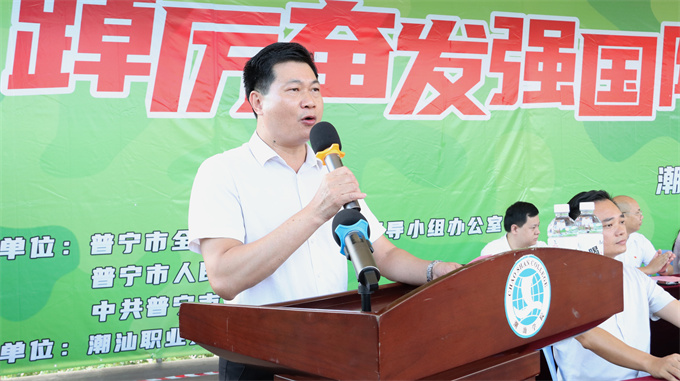 普宁市人民武装部部长石江兵、普宁市文明办专职副主任张春联、潮汕学院校长曾向昌、潮汕学院党委书记李育华、普宁市人民武装部军事科负责人赖晓桐、普宁市委宣传部教育和文艺组长黄惠芹、民兵教官队长杨晓东等领导出席现场。