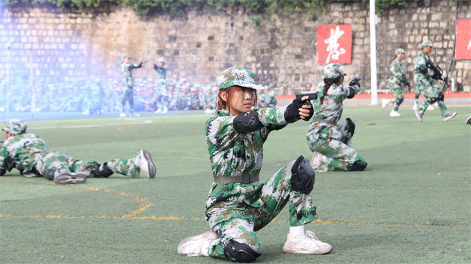 曾校长表示,通过14天的军训,同学们的精神面貌发生了可喜的变化,军训不仅增强了同学们的身体素质,让同学们学到了基本的国防知识、军事知识和技能,而且加强了爱党,爱国,爱军的意识,强化了国防观念和报效祖国的责任感,培养了集体主义思想和艰苦奋斗、吃苦耐劳、团结友爱的精神。