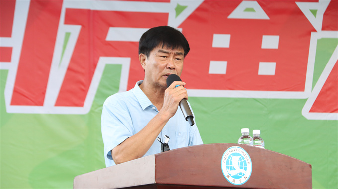 学校校长曾向昌讲话。曾校长首先向全体2023级新同学表示热烈的欢迎和衷心的祝贺,向为这次军训辛勤付出的教官和老师们致以崇高的敬意,向出席今天大会的各位领导表示衷心的感谢。