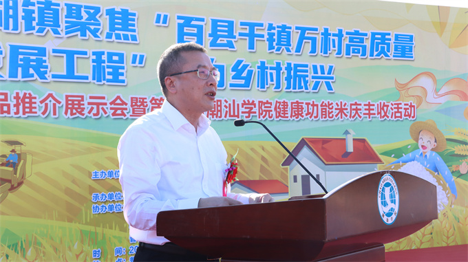 陈晓明同志表示,里湖镇与潮汕学院共建“产学研”实践基地,成功创建“源巴稻大米”品牌,产量喜人,创收超100万元,有力壮大了村集体经济,拓宽农民增收致富渠道,推动新时代新征程“三农”工作再上新台阶。今天举办“丰收节”活动,旨在推介里湖名特优农产品,倡导勤劳耕耘,激发生产热情,希望广大父老乡亲和“三农”工作者继续保持艰苦奋斗的优良作风,开拓发展思路,提高产业质效,创造幸福美好生活,绘就宜居宜业和美里湖新画卷。