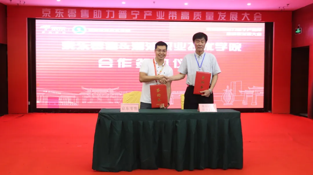 4月15日下午,潮汕职业技术学院(以下简称“潮汕学院”)与京东零售华南产业带(以下简称“京东零售”)在普宁产业带高质量发展大会上签订战略合作协议。