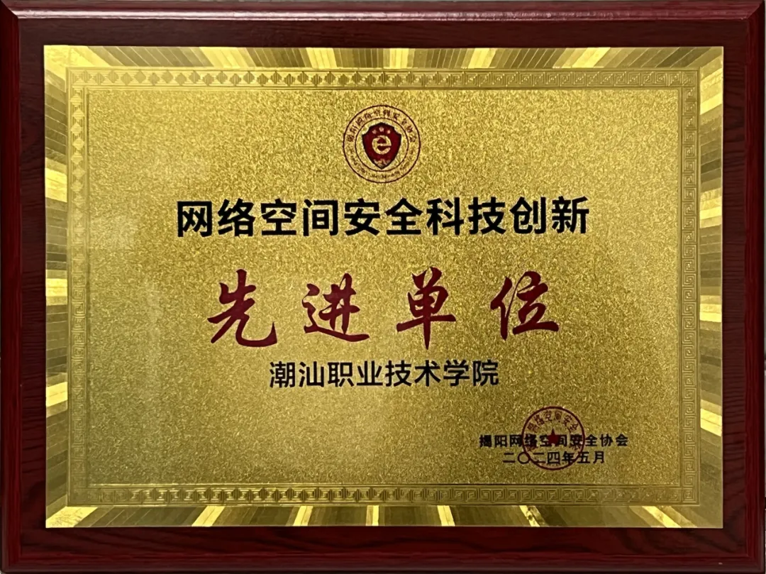 潮汕学院荣获“网络空间安全科技创新先进单位”、网络空间安全课题调研共建单位、网络空间安全协会-潮汕职业技术学院网络安全志愿服务队。